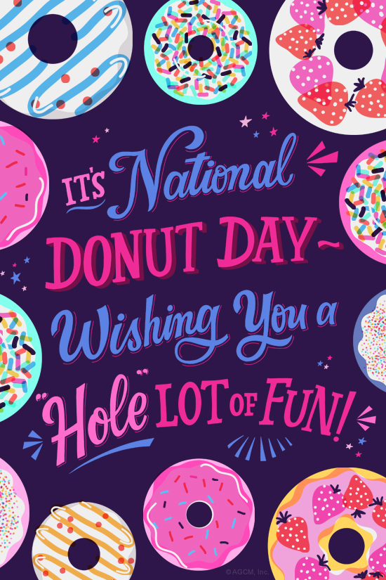 Celebrate National Donut Day with a delightful digital postcard! It's a quick, easy way to spread joy and fun-perfect for sharing a 'hole' lot of laughter.