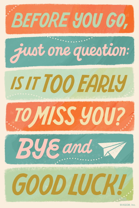 Send off someone special with this just because digital postcard! Easy and fast to send, it's a heartfelt way to express your goodbyes and good luck wishes.