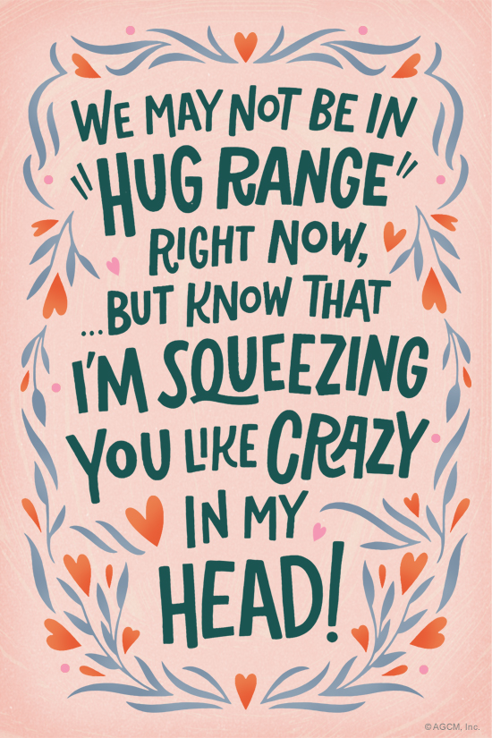 Send a virtual hug with this 'miss you' digital postcard. It's an easy and quick way to show you're thinking of them, squeezing them in your thoughts!