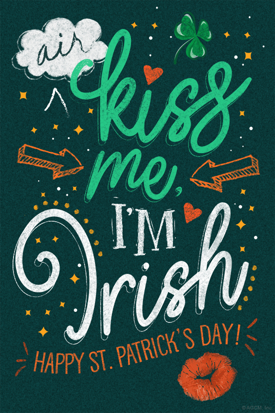 Celebrate St. Patrick's Day with a playful digital postcard! Send an 'Air-kiss me, I'm Irish' greeting fast and easily, sure to bring smiles and Irish cheer.