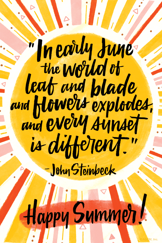 Celebrate the vibrant spirit of summer with this beautiful digital postcard featuring a poignant quote by John Steinbeck. It's the perfect quick and easy way to share the joy of the season!